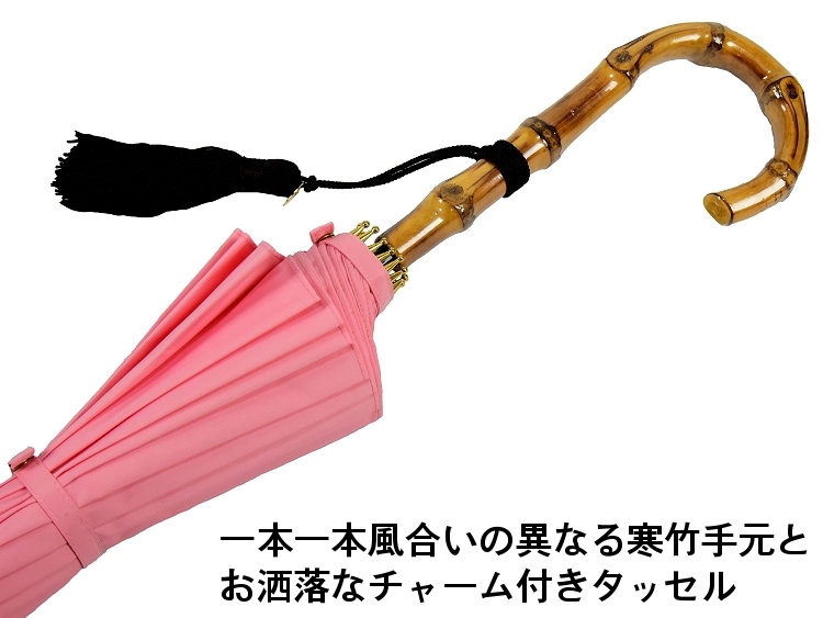 気品あふれる傘のお色とタッセル付き寒竹手元のエレガントなコンビネーション。